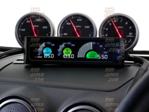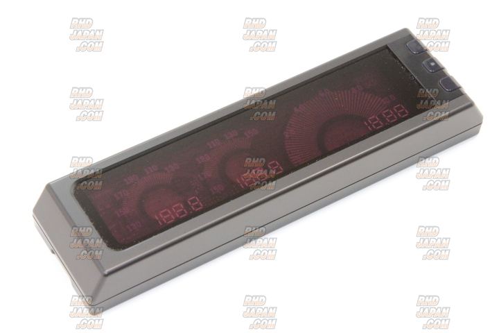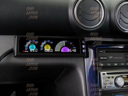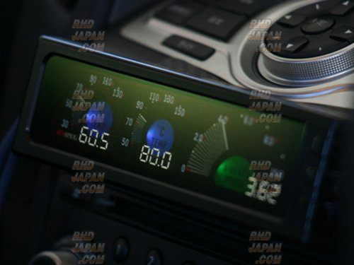 This DIN unit fits in the standard size single din center console location and can display two temperatures (ex. Oil and Water) and one pressure reading (ex. Oil Press.). The advanced display incorporates a two-layer digital numerical accuracy with a “real-time” analog feel. It has standard Peak hold and Warning functions and each meter incorporates a centralized full-color LED indicator that changes the color of the corresponding meters according to temperature or pressure readings. Get this and all your JDM at RHDJapan!!