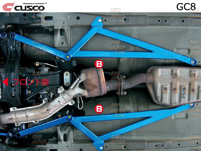 This bolts onto the underside of your vehicle. The Cusco Power Brace has sufficient strength, and add a great amount of rigidity to the vehicle. The increase in rigidity results in a stable ride, increase in traction, and increased response by the car to your steering inputs. Get this and all your JDM at RHDJapan!!